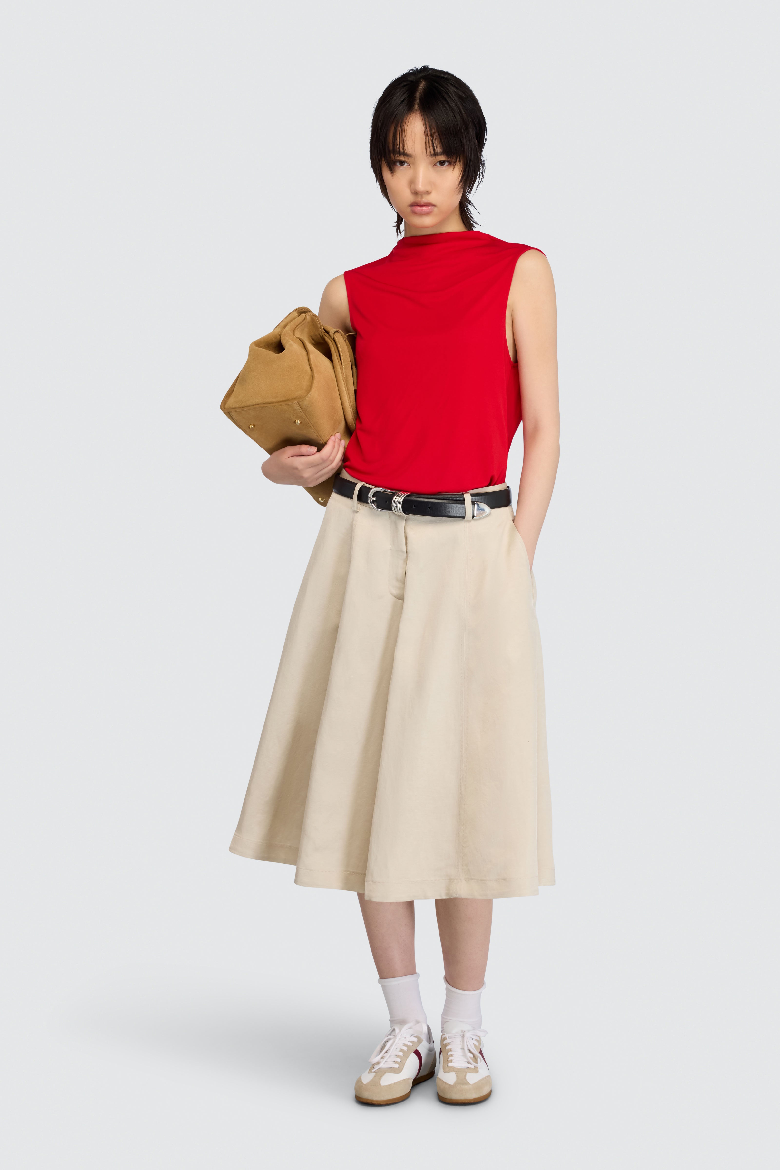 VISCOSE BLEND TOP. COLLARED, SLEEVELESS. ASYMMETRIC HEM, SLIM FIT.