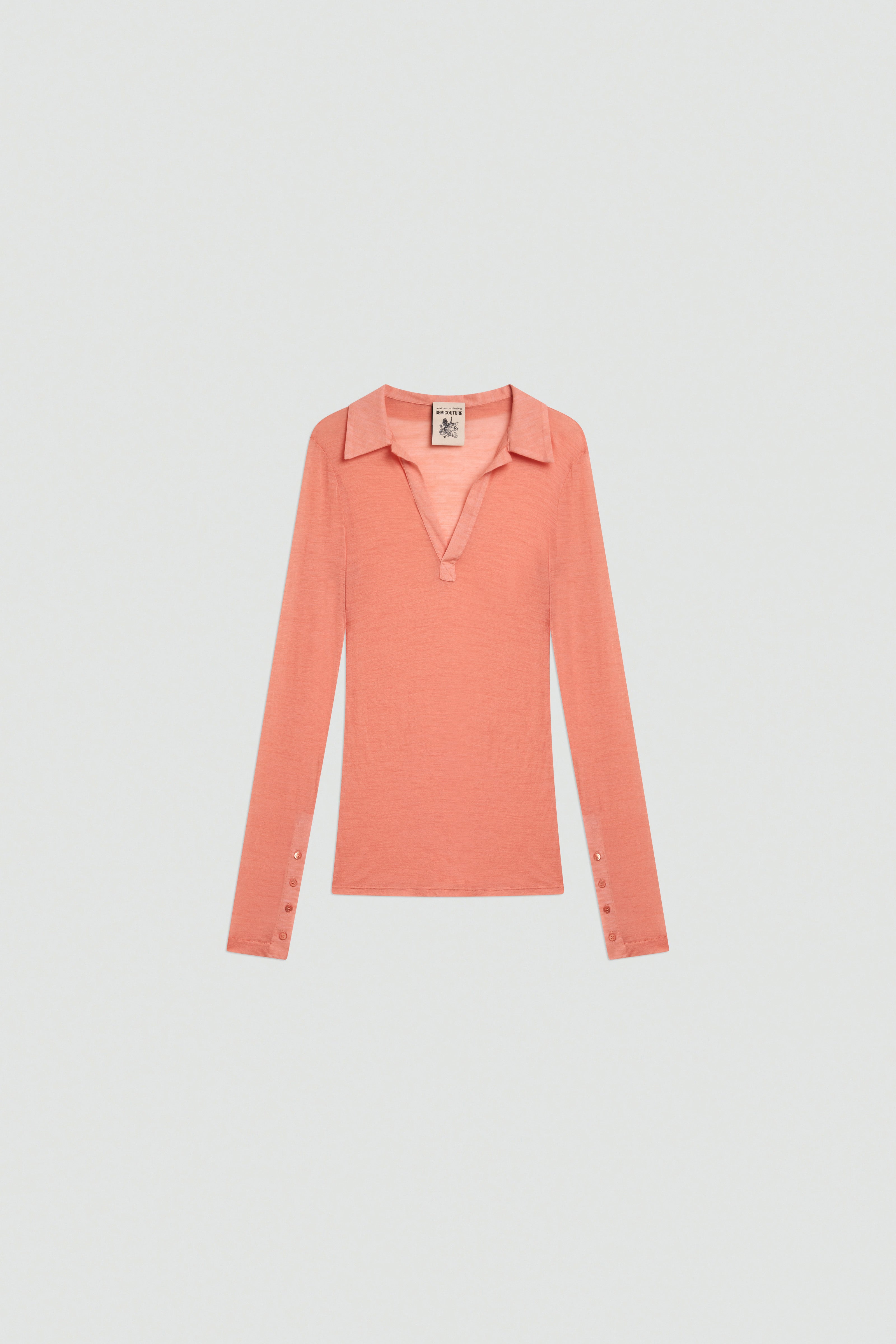 Wool jersey turtleneck sweater, with long sleeves. Tight fit, hip length.
