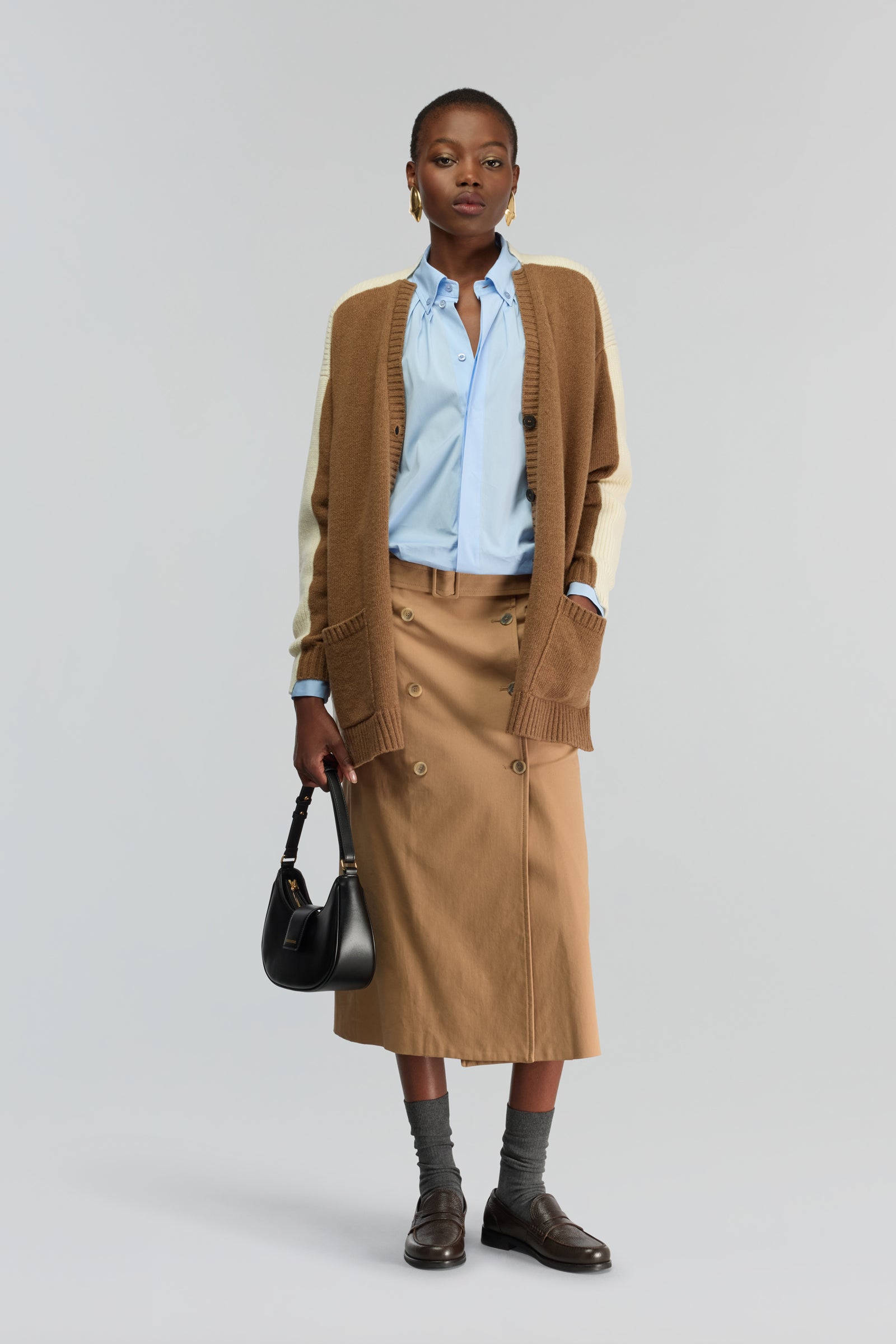 Cotton poplin shirt. Front button placket. Side slit detail. Wide bi-color cuffs. Regular fit, hip length.