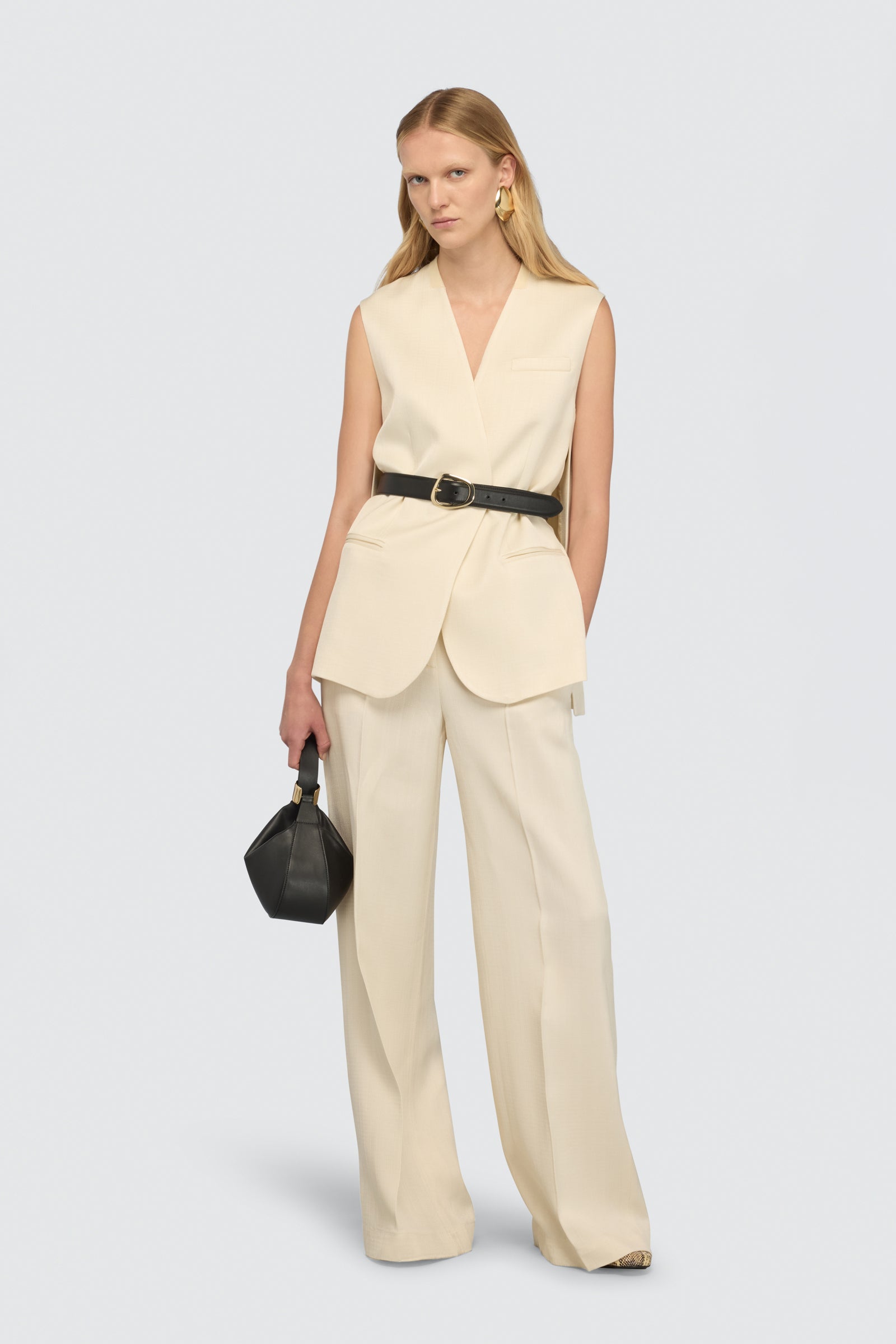PANTALONE IN CREPE DE CHINE CON PIZZO SUL FONDO. ELASTICO IN VITA E COULISSE. GAMBA DRITTA. VESTIBILITÀ REGULAR.