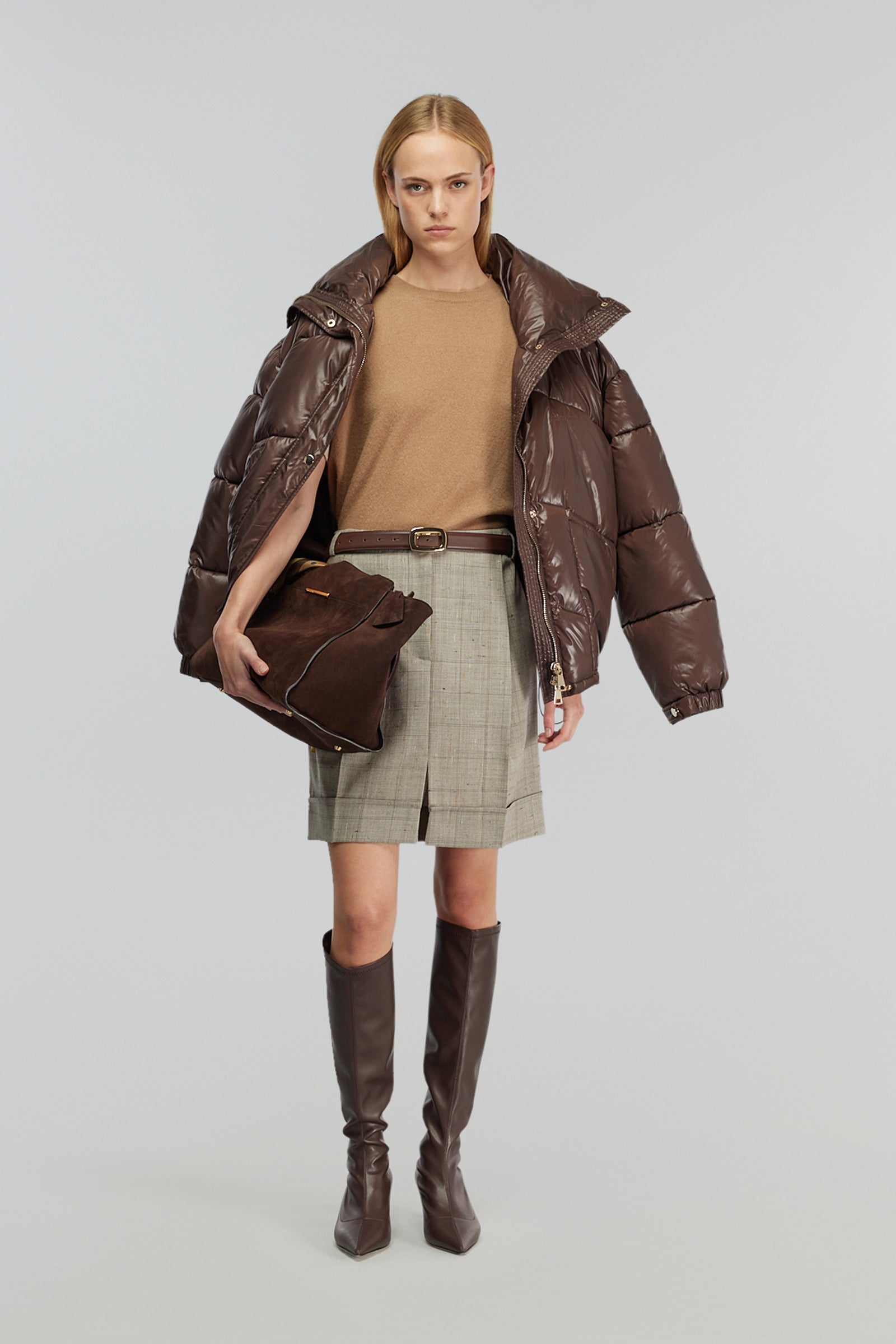 Piumino con abbottonatura frontale. Collo alto. Due tasche applicate e collo alto. Coulisse regolabile sul fondo. Vestibilità regular e lunghezza bacino.